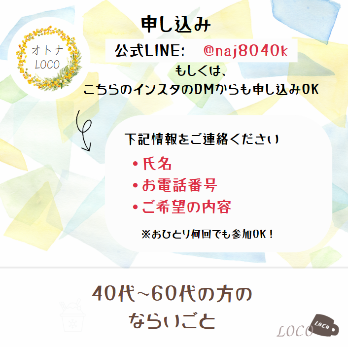 オトナLOCO𓂃⟡.·40代から60代の方のオトナのならいごと