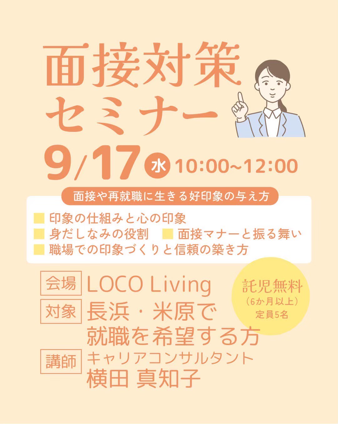 【託 児】5名(先着順) 6ヶ月以上