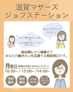 ★働き方探しから、面接の受け方アドバイスまでワンストップ支援🍀 仕事、家事、育児のバランスを考えた 「私らしい働き方」を見つけ、 就労につながるようなサポートを行っていきます🙌 【ママたちのご相談例】 ●パソコンスキルが不安だけど、未経験の事務職に就けるものなの? ●子育てに理解のある会社で働きたいけど、どうやって探すの? ●再就職する前に、とっておいた方が有利な資格はありますか? ●働くなら正社員で働きたいけど、子育てしながらチャレンジできるの? ●履歴書の志望動機や面接での自己PRをどうしたらいいかわからない! など、なんでもご相談にのってくださいます(*^^*) お気軽にお越しくださいね👌 【ご予約】 ☏0749-53-4480 LINE @:@346hnxis -------------------------------------------------------- *かいごとフクシ
