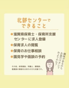 滋賀県保育士・保育所支援センターの 北部センターがLOCOにやってきます˚✧₊✧༚* 《相談日》 毎週水曜日 ※火曜日もお問い合わせ・ご予約の受付を行なっています 【北部センターでできること】 *求人の登録 *保育求人の閲覧 *保育のお仕事相談 *園見学や面談の予約調整 興味があるからお話だけでもきいてみようかな?など 気軽にお問合せくださいね♪ \ご予約待ってます◡̈/ 🧒未経験の方やブランクありの保育士さん 👦保育補助 👶調理師 看護師 栄養士の資格がある方 👧保育のお仕事に興味のある方 【ご予約】 ☎︎専用電話(火曜・水曜のみ) 090-7420-1323 メール otoiawase@shiga-hoikukyo.jp --------------------------------------------------------
