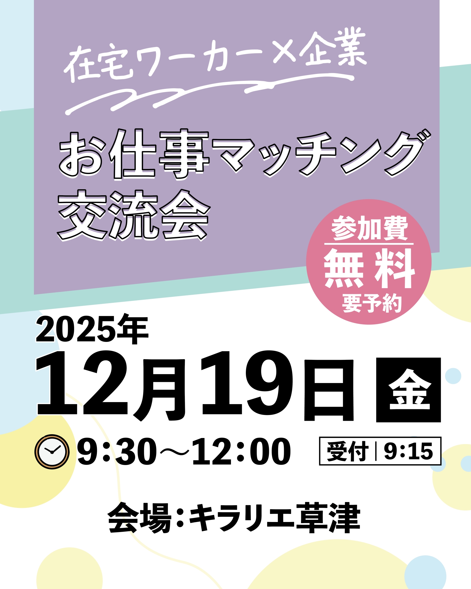 後援:草津市、仕事と生活の調和・女性活躍推進会議しが