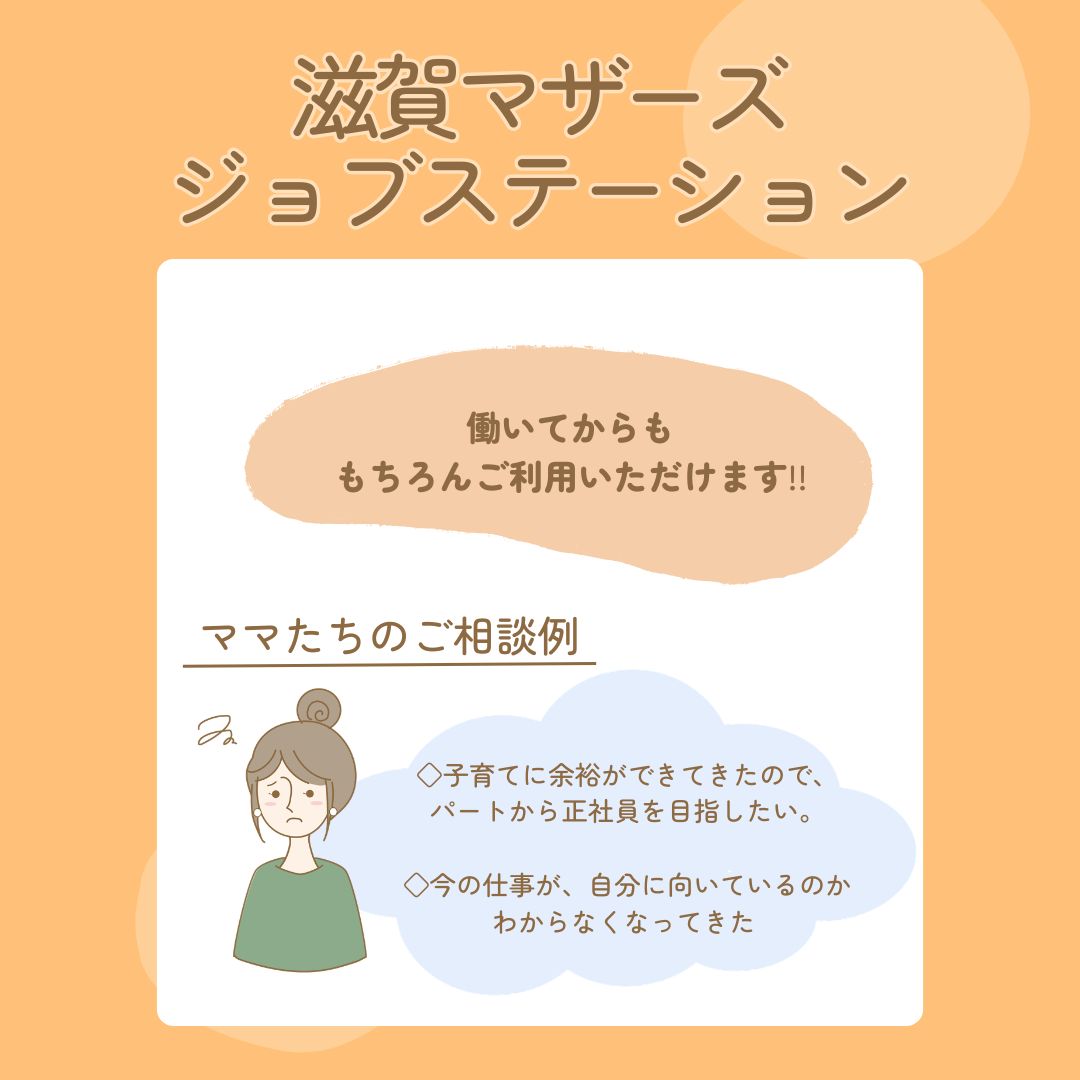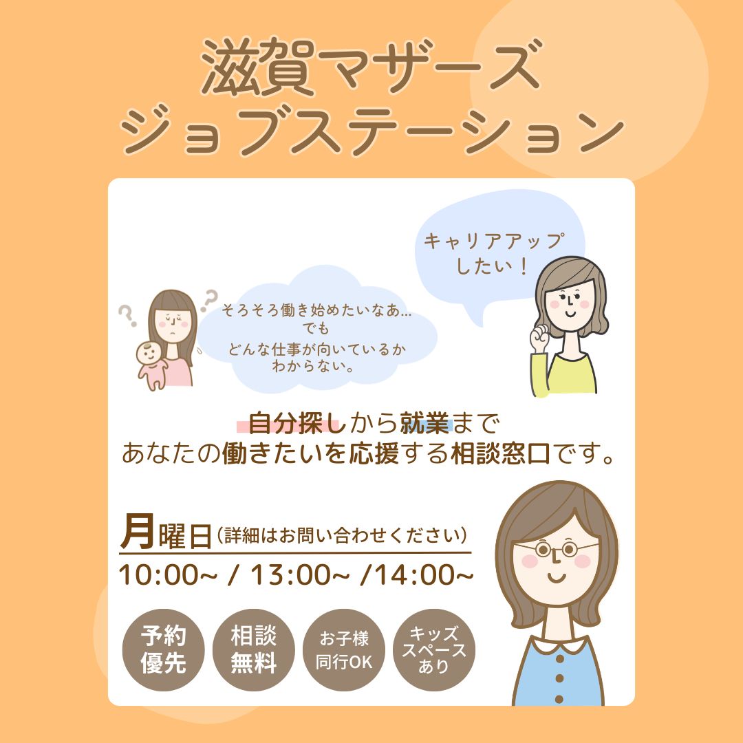 『滋賀マザーズジョブステーション』開催:月曜日(詳細はお問い合わせください)